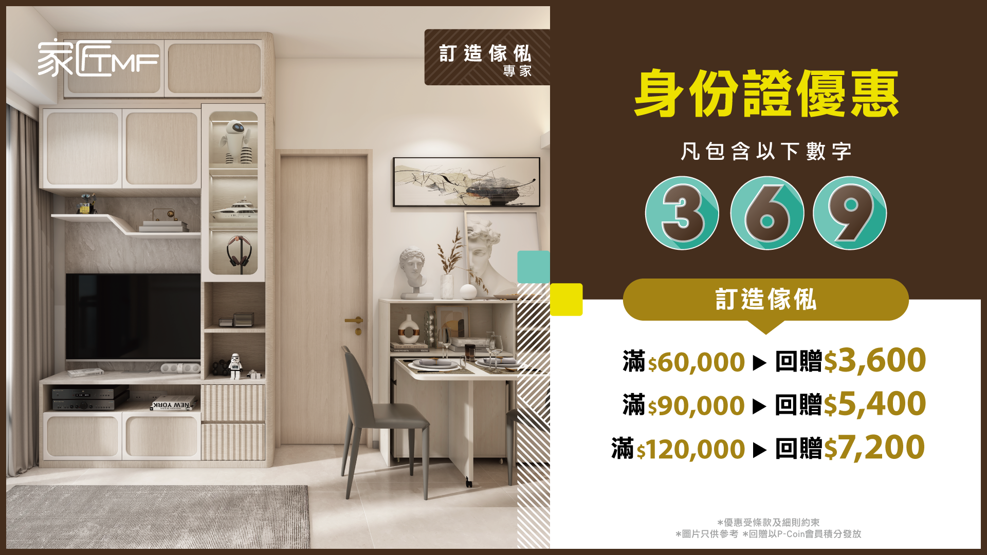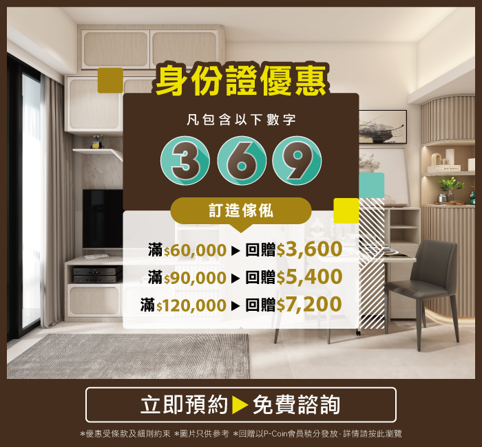 顧客凡訂造傢俬滿指定金額,即可享有長達48個月免息分期付款;首次置業的顧客更可享有「無消費限額免息分期優惠*」! 詳情請瀏覽以下網址,或向店員查詢。 https://www.tmf.hk/0息分期付款/ *顧客所購置單位之實際面積必須為600呎或以下,不受免息分期條款約束