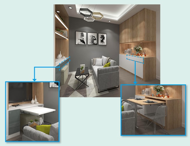 - 客廳設計出拉檯,令工作空間擴闊,提升工作效率